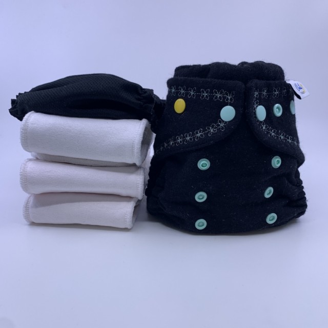 Bleiepakke Tradisjon ai2 ullcover/sperrelag m/ 3 bambus/hampinnlegg og liner one size UnikumBLEIA tøybleier. Svært god stand. Ny verdi 1065 kr.